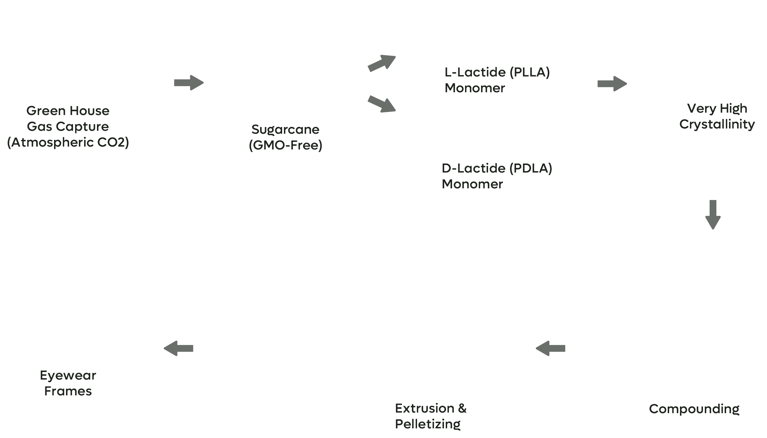 We supply high-performance, eco-friendly bioplastic to eyewear companies, providing a sustainable solution for the production of innovative eyewear frames.